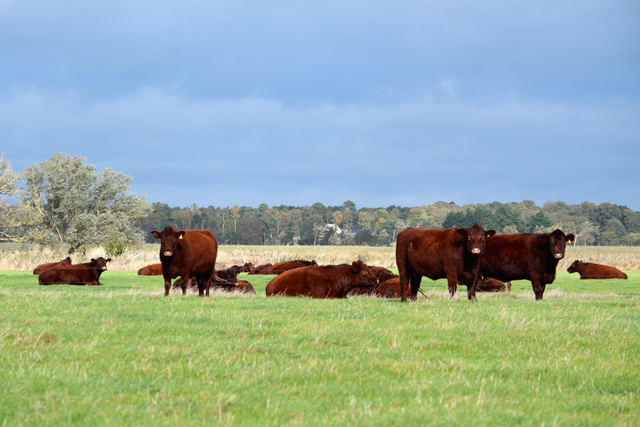 In their idyllic setting on marsh fields by the River Alde in coastal Suffolk, Yarn Hill Lincoln Reds roam freely in family groups, and calves are only weaned when they have outgrown their mothers.